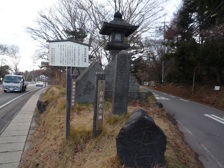 11月の最後の週末も歩きました。実は次回は12月を予定していましたが、週間天気予報を見ると今度の土日は天気がいい。これから益々日が短くなるし、雪の碓氷峠越えは止めたいので急遽実行しました。結果は、天気に恵まれた気持ちよい41kmでした。 6時過ぎに家を出て大宮経由で佐久平へ。9時少し前のバスで前回終点の八幡宿の八幡神社に到着、今回の旅の無事を祈って9時15分に出発しました。快晴、気温5度の絶好のコンディション。左手に浅間連峰を見ながら順調にスタートしました。 10時に塩名田宿に到着、小さい宿場ですが、宿内に千曲川が流れ、各家には昔の屋号を建て掛けるなど宿場の雰囲気を出しています。食料品屋の親父が塩名田宿のパンフレットをくれましたが、良く見るとこの家にも「本陣 丸山善兵衛」の看板がありました。 更に歩を進めると、道沿いにりんご園が続きます。時期的には終わりかけていますが、所々に真っ赤なりんごが生っていました。13時20分に小田井宿に到着。ここは古い町並みが続く宿場で、しっかり保存もしているので大変心休まる場所でした。 15時に追分宿のはずれにある「分去れ」(わかされ)に到着。北国街道(善光寺道)と中山道の分岐点ですが、現在はこの間を国道18号線が走っています。脇本陣油屋は堀辰雄が定宿としていましたが、現在は修復のため休業中です。又、近くに泉洞寺があり、歯痛止めの仏様と親しまれているユニークな石仏がありました。この後、堀辰雄文学記念館と郷土館を見学して、少し先のゆうすげ温泉旅館に投宿しました。 |