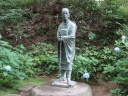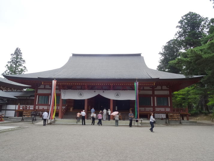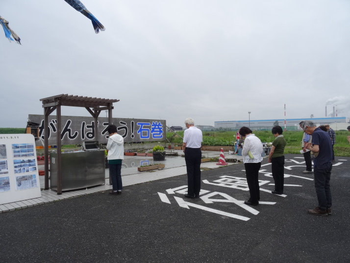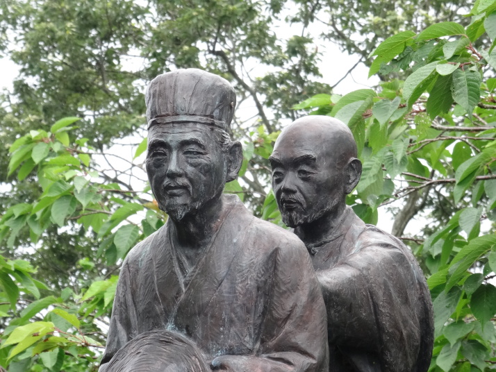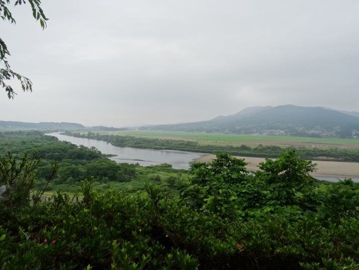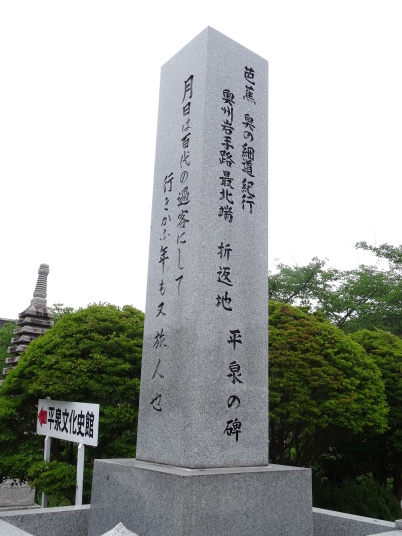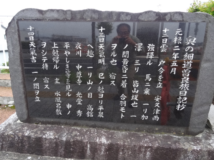 2日目は、早朝に住吉社、袖の渡りを見学、歌枕「袖の渡り」は東日本大震災で被災し荒地になっていました。日和山公園からも大震災で全てを失った石巻市街地が一望出来ます。二日間お世話になったバスの運転手さんは、住まいが仙台空港の近くで、東日本大震災の津波で家は跡形もなく流され、ご両親はじめ親戚の方も多く亡くされたそうです。朴訥とした語り口で淡々と話される姿に言葉も有りませんでした。悔しさや悲しみを秘めて毎日過ごされている方が如何に多いか、考えさせられました。更に「がんばろう!石巻」の看板のある所で黙祷をし、登米に向かいました。 登米大橋の北上川沿いに「芭蕉翁一宿之跡」碑があります。登米は元水沢県庁のあった所で落ち着いた町でした。更に北進して一ノ関で昼食。レストランの近くに芭蕉が2泊したという二夜庵跡の碑がありました。毛越寺を経て高館義経堂へ。高館から北上川のゆったりとした流れを眺めると『夏草や兵どもが夢の跡』が聞こえてきます。