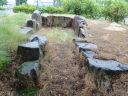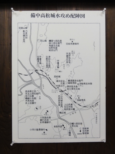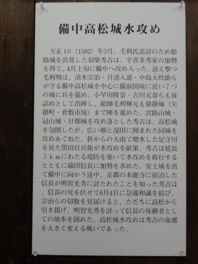 強い雨の中、7時半にホテルをスタートしました。 9時30分に吉備津彦神社に到着。備前の国の一宮として信仰を集める神社で、吉備津彦命を祀っています。荘厳とした社殿が雨に煙っていました。 11時45分に板倉宿本陣(鯉山コミュニティセンター)を通過し、近くのうどん屋で昼食を済ませた後は、街道を大きく離れて高松城祉を目指すことにします。12時40分に高松城祉に到着。高松城は天正10年(1582)の中国役の主戦場になった城跡で有名。城は沼沢地に臨む平城(沼城)で、石垣を築かず、土壇だけで築城された「土城」で、城の周辺には沼沢があり、これが天然の外堀をなしていたことが窺われます。確かに現地に行ってみると、平坦な田圃の中にあり、特に強い雨が降っていたので水攻めに遭えば一溜りもないと納得しました。(これは今だから言えることですが) 元の街道に戻って鯉喰神社を経て備中国分寺を目指します。相変わらず雨が降っていますが、時折激しくなり、歩道の無い国道では思わず立ち止まったり、近くの農家の納屋に避難して雨宿りしながら進みます。この近くには古墳も多くありますが寄り道せずに進みます。16時に備中国分寺に到着、ここは国分尼寺とともに天平13年(741)に聖武天皇の勅願によって建てられた官寺で、中世には廃寺になりましたが、江戸時代中期に日照山国分寺として再興されたといいます。大きな五重塔が聳えていました。 一日中雨の街道歩きでしたが、高松城祉の見学にはピッタリでした。倉敷まで電車で行って宿泊、美観地区の地味な飲み屋で一杯やって疲れを癒しました。飲み屋の壁には以前に来店した宍戸錠の落書きが残っていました。 |