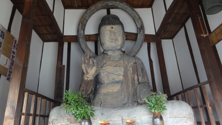 15時に周防国衛跡に到着。大化の改新(645)後わが国は中央集権国家を成立させるため、全国60余りの国々にそれぞれ国衛(府)が設けられた。諸国の国衛(府)の所在地があまりはっきりしない中で、周防国衛跡が良く保存されているのは、文治2年(1186)周防国が東大寺の知行国となったことから、治外法権的地位を有していたことによると説明されています。更に進むと多々良大仏殿があります。これは高さ3メートルあり奈良の東大寺大仏殿を模して建立されたもので、周防の国司、俊乗坊重源上人の作と伝えられています。