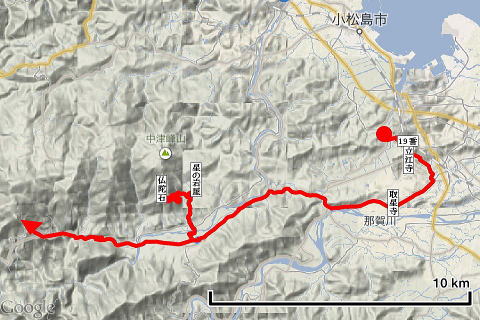 | 19番立江寺7:00〜取星寺8:40〜星の岩屋13:15〜仏陀石13:55〜坂本16:30 |