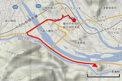 スマホが操作不良で、地図は四万十屋までの4.5km。