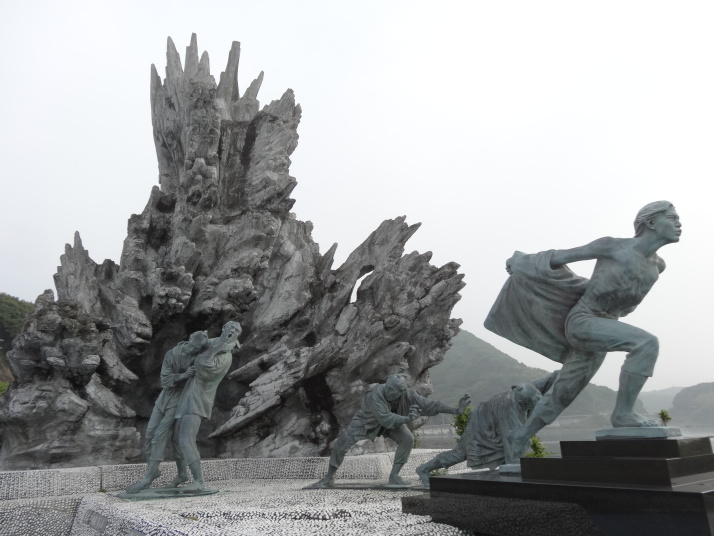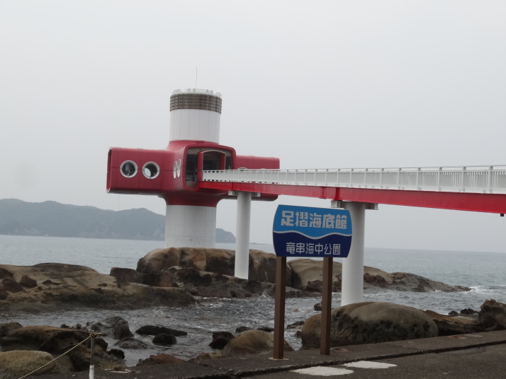 | 天気予報は曇りから晴れということで安心して出発。先ず、万次郎記念館の萬次郎少年像を見て先へ、見応えのある落窪海岸や竜串が続きます。この辺りは化石漣痕の海岸で、波や水流の影響で水中の堆積物の表面につくられた凸凹がそのまま地層面に残されたもの、昭和21年の南海地震により隆起したといいます。竜串の足摺海底館に入りましたが最近の天候の影響で海は濁っていて期待していたようには見えませんでした。