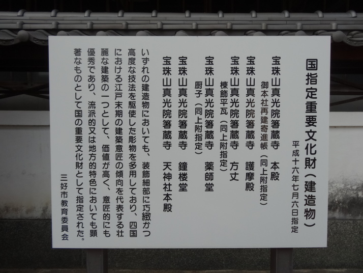 バスで前日の終点、平山まで戻って出発です。暫く行くと別格14番椿堂(常福寺)へ。弘法大師が杖を立てた所から椿の芽が出て大木になったことから椿堂と呼ばれるようになったと。更に24㎞ほど歩いて別格15番箸蔵寺へ。標高540mに本殿があり、150mから500mまではロープウエイを使いました。15時50分に箸蔵寺入口に到着、更に長い石段を登って540mの本殿に到着しました。ご本尊は金毘羅大権現で「こんぴらさん」の奥ノ院、神仏習合の風習を色濃く残すお寺です。本殿、護摩殿、方丈、薬師堂、鐘楼堂、天神社が国重要文化財となっている荘厳な寺院でした。 今日はこの箸蔵寺の宿坊(方丈)泊り。宿泊者は私一人でした。