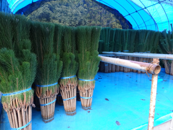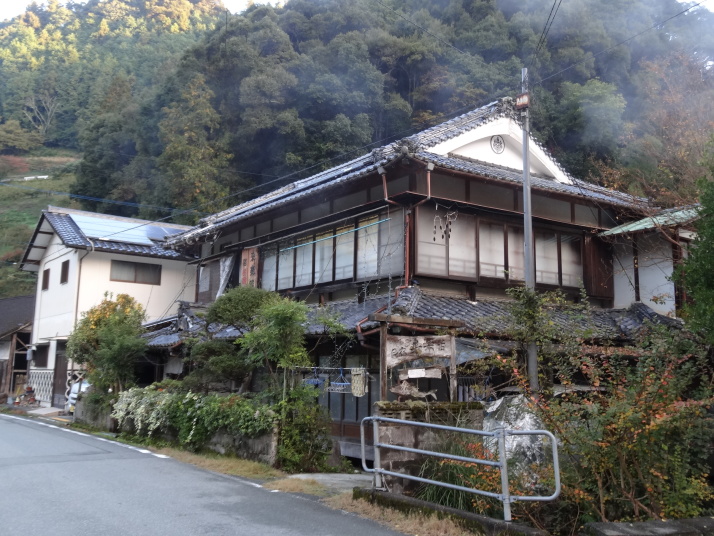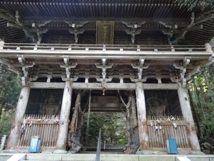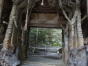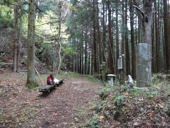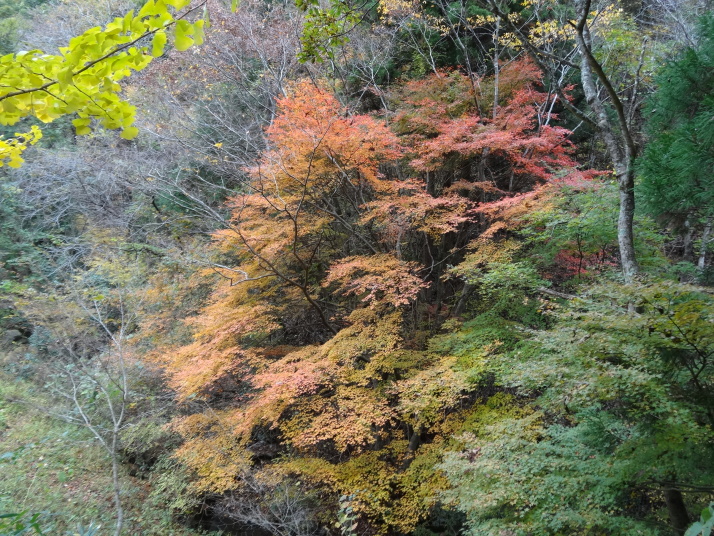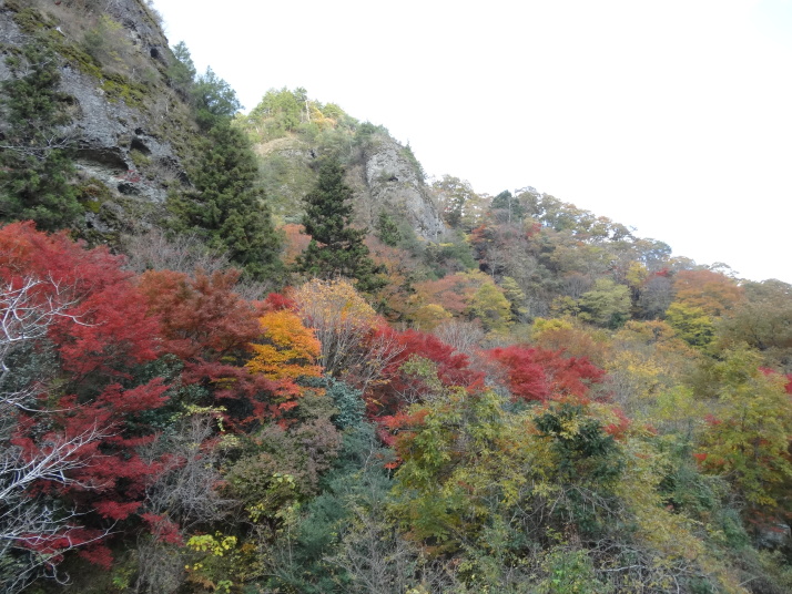 鴇田(ひわだ)峠790mを越えて久万高原にある大宝寺を目指した一日。 先ず、吉野川沿いに進んで行くと正月用の門松を作っている農家が多く見られます。三嶋神社で休憩して更に進むと、ある農家に霊場納経塔が立っていました。坂東・秩父・西国・四国の各霊場を巡拝し大正2年8月に満願したという女性の碑、大したものです。12時20分に鴇田峠に到着、かつては主街道として賑わった所で昭和30年頃まではこの場所に茶屋があり行き交う人々が一休みしたとあります。 ここから標高約500mの久万高原まで下りていきます。久万高原町は現在ラグビーで町興し中、毎年3月に高校ラグビーの大会もあるらしい。昼食後、44番大宝寺を参拝。仁王門の金剛力士像は享徳4(1455)年に彫られたもの、又、大草鞋も迫力があります。本堂、大師堂が紅葉に彩られていました。その後、遍路道を進むと予想もしていなかった急な上り、ピーク715m地点まで行って下ります。16時に古岩屋に到着、巨大な円錐状の礫岩峰が紅葉の中に聳えています。水の浸食作用によって岩が剥き出しとなり、無数の穴が空いた特異な景観で国の名勝に指定されています。 |
