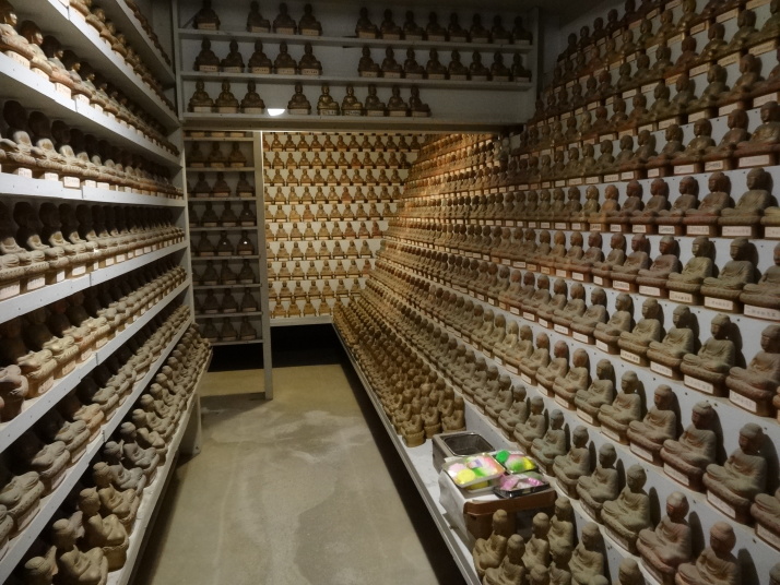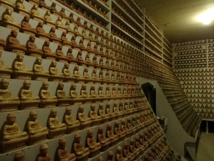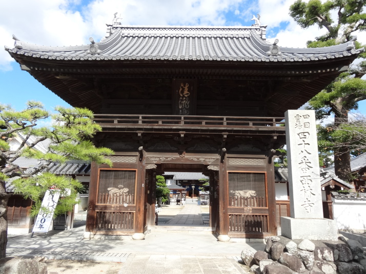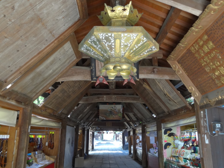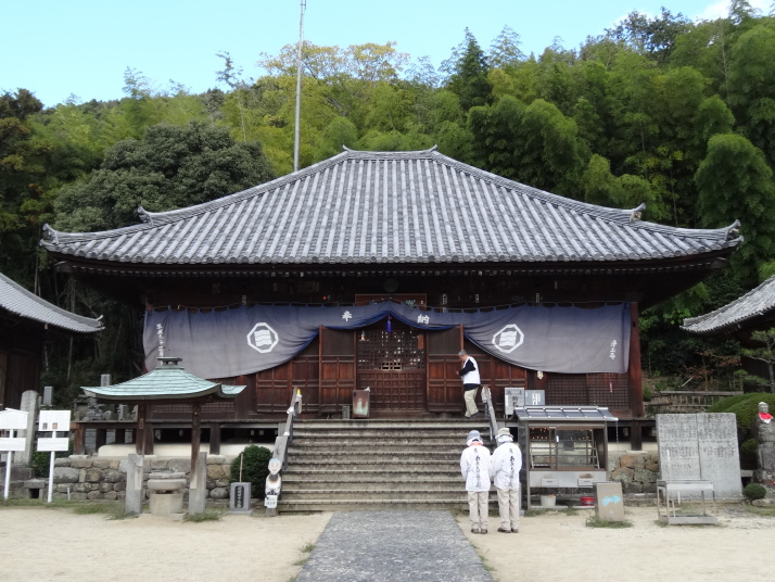 昨日の浄瑠璃寺から始まるここ一帯は遍路の元祖とされる衛門三郎ゆかりの里です。7時過ぎに47番八坂寺を参拝、山門と橋が一体となっていて、天井には極楽浄土の画が描かれています。本堂の地下には万体阿弥陀仏が所狭しと安置され、閻魔堂の両端には「極楽の途」「地獄の途」があって、それぞれ内壁に極楽浄土、地獄の絵図が描かれています。