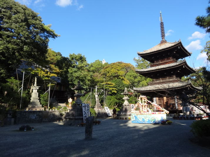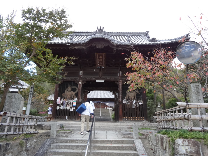 番外の杖の渕、香積寺を経て昼食後に48番西林寺へ、伊予の関所寺と呼ばれています。更に3㎞ほど進むと49番浄土寺に至ります。空也上人ゆかりの寺で本堂は室町時代の文明14(1482)年に再建したもの、堂内の内陣にある一間厨子や空也上人立像と共に国の重要文化財となっています。50番繁多寺は松山生まれの遊行上人の一遍が学問を修めた寺。14時20分に51番石手寺に到着しました。衛門三郎ゆかりの寺で、参道入口には衛門三郎の像があり、参道脇に土産物店が立ち並んだ先に仁王門(国宝)があります。本堂・三重塔・五輪塔・護摩堂・鐘楼・銅鐘など重文となっている文化財が豊富で見応えのあるお寺でした。