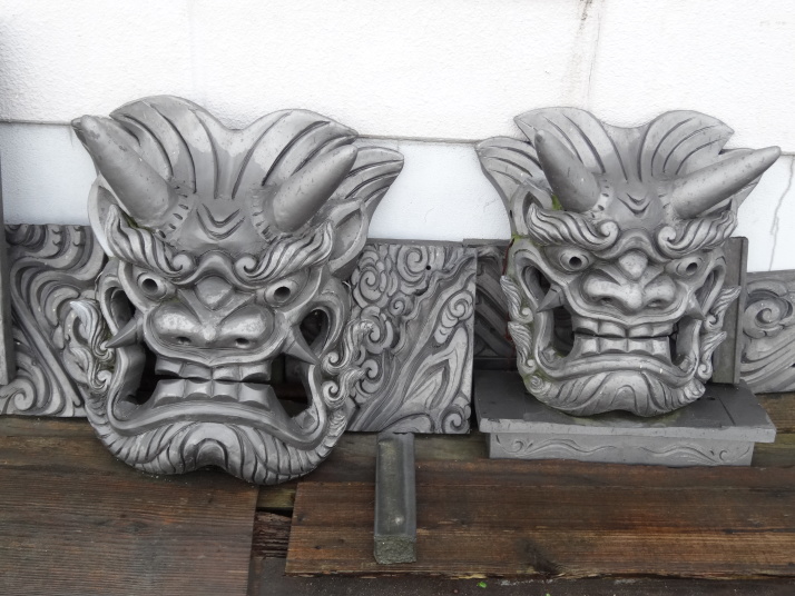 | 今回の区切り打ちの最終日。朝から小雨模様、瓦の町菊間町を歩いて番外遍照院へ。流石に瓦の町の寺らしく、山門の脇を固めるのは金剛力士像ではなく、阿形・吽形の鬼瓦です。更に太陽石油菊間製油所の大きな工場を過ぎると番外青木地蔵。地蔵堂の前には立派な遍路小屋、昨日泊まったという年齢少し上のお遍路が水道で洗濯をしていました。